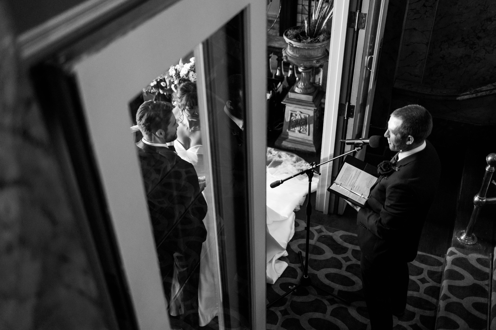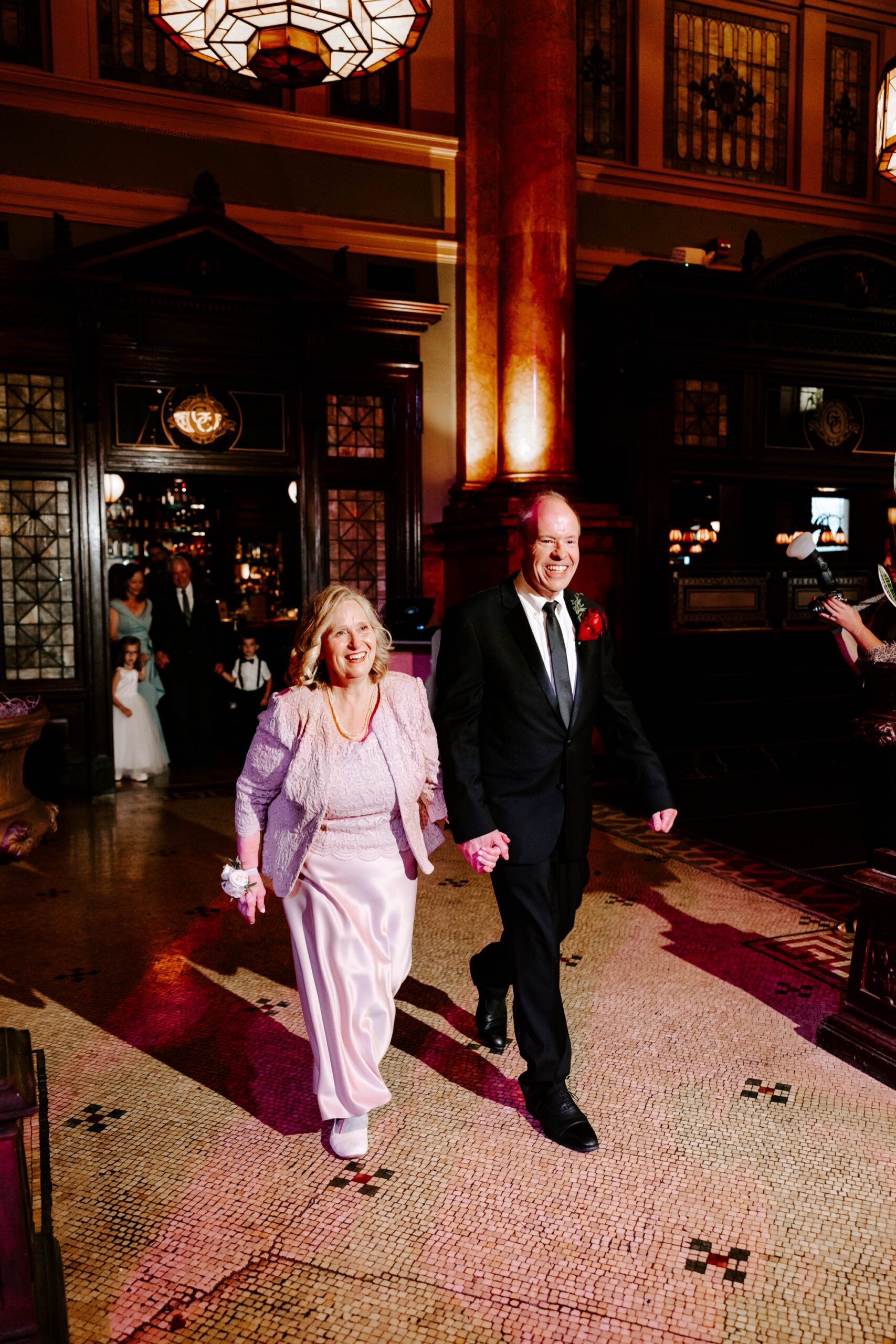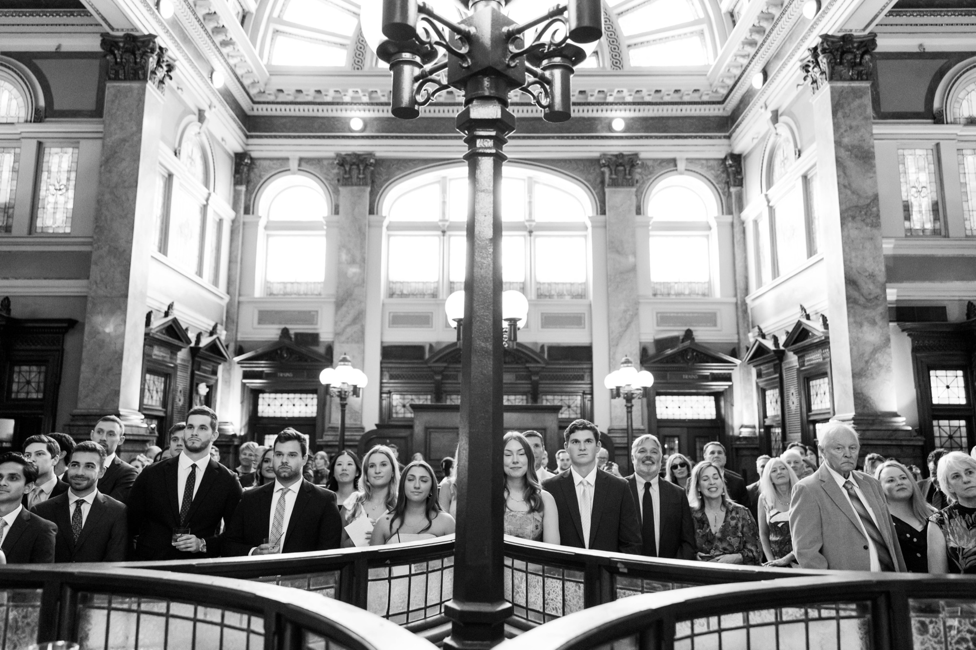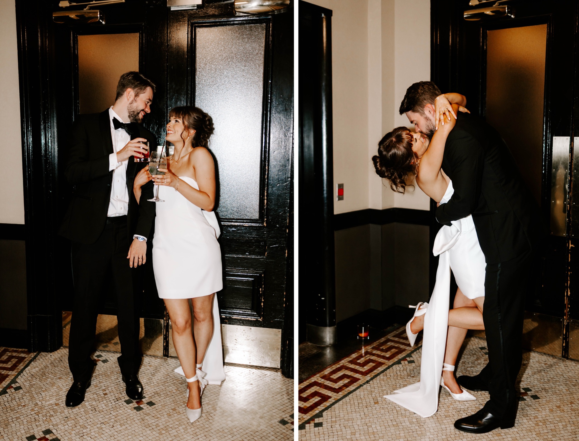 But what makes it so special for weddings today is how seamlessly it balances that historic grandeur with modern sophistication. The warm, golden light pouring through the glass dome ceiling lends itself beautifully to contemporary photography. And the mix of marble, wood, and brass details creates a backdrop that looks stunning whether you’re planning a black-tie affair or a more understated, chic celebration.