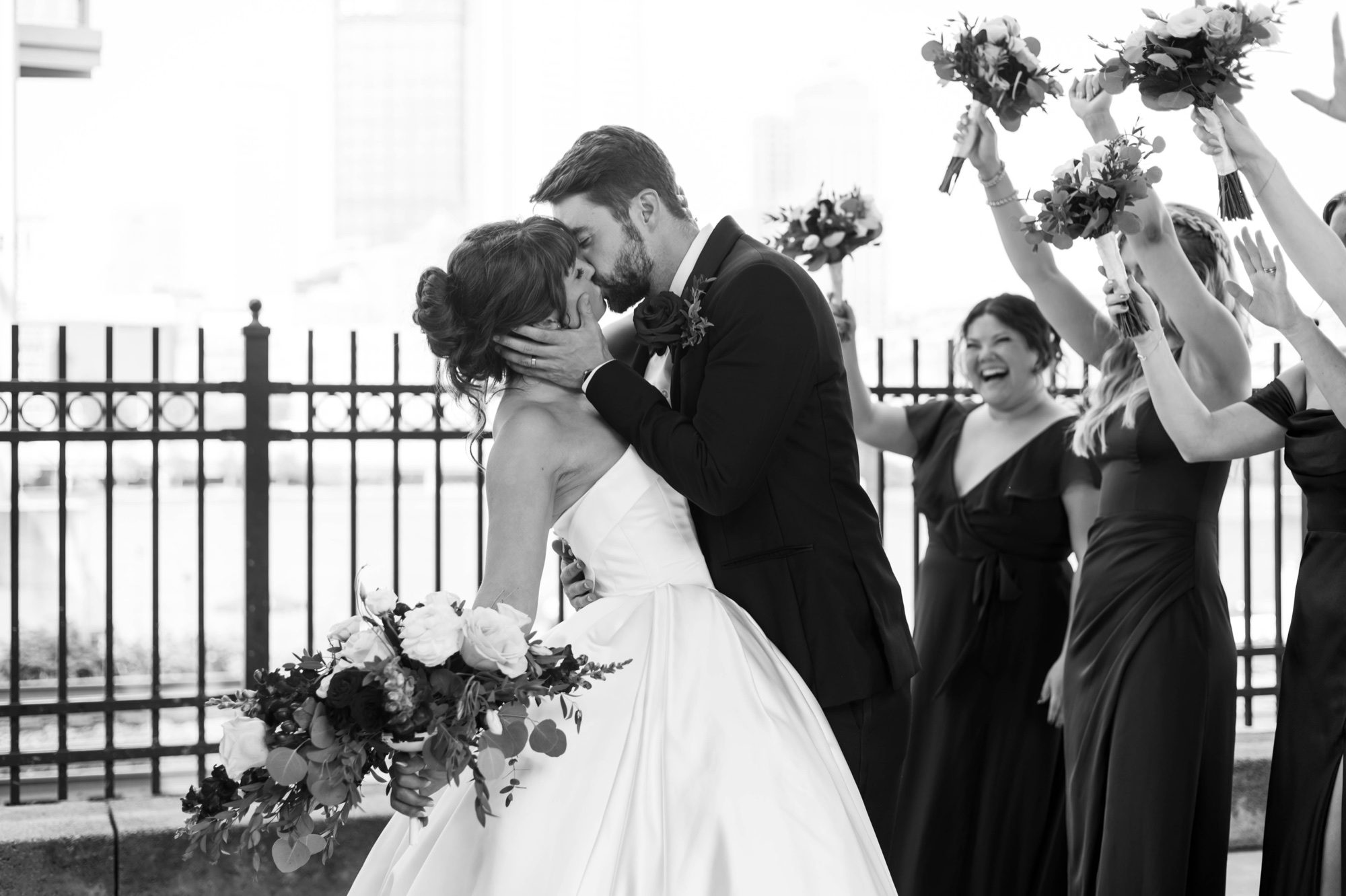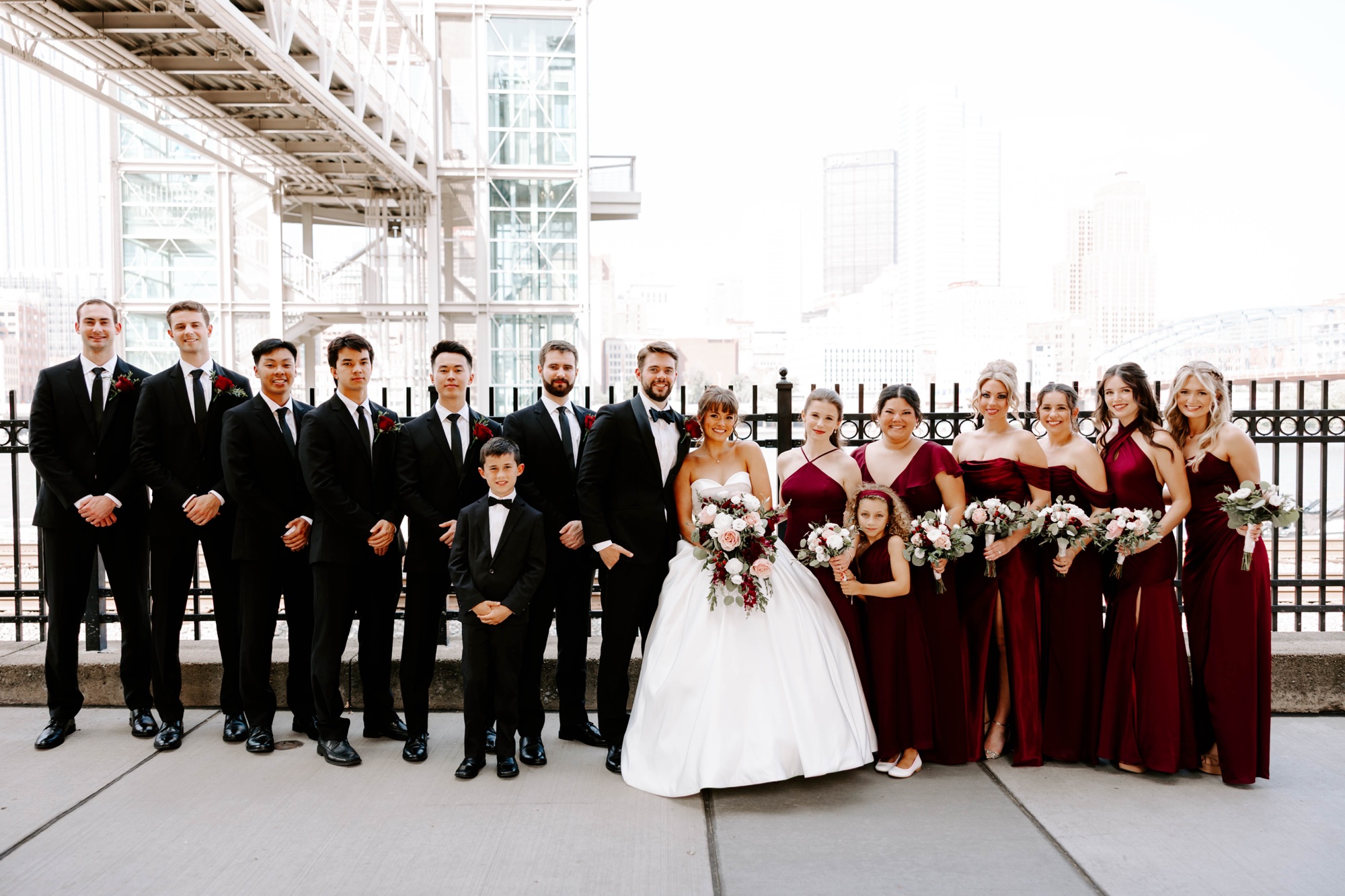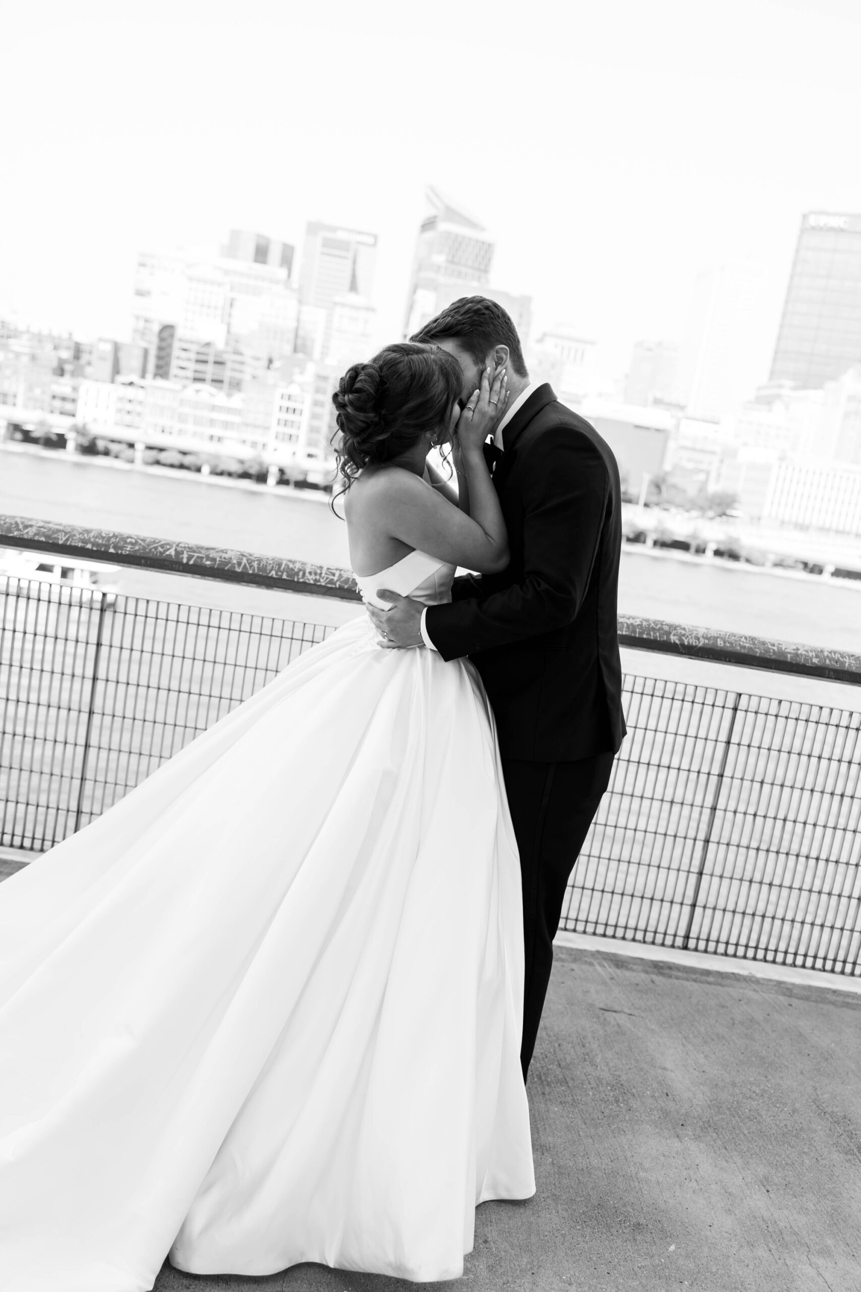Sophia and Brendan’s wedding day unfolded like a masterclass in blending eras. They began their portraits around Pittsburgh’s North Shore, where modern architecture and skyline views offered the perfect contrast to the opulent interior of The Grand Concourse. The result? A gallery that feels both cinematic, editorial, and deeply personal—bold city backdrops paired with soft, connection-centered moments.