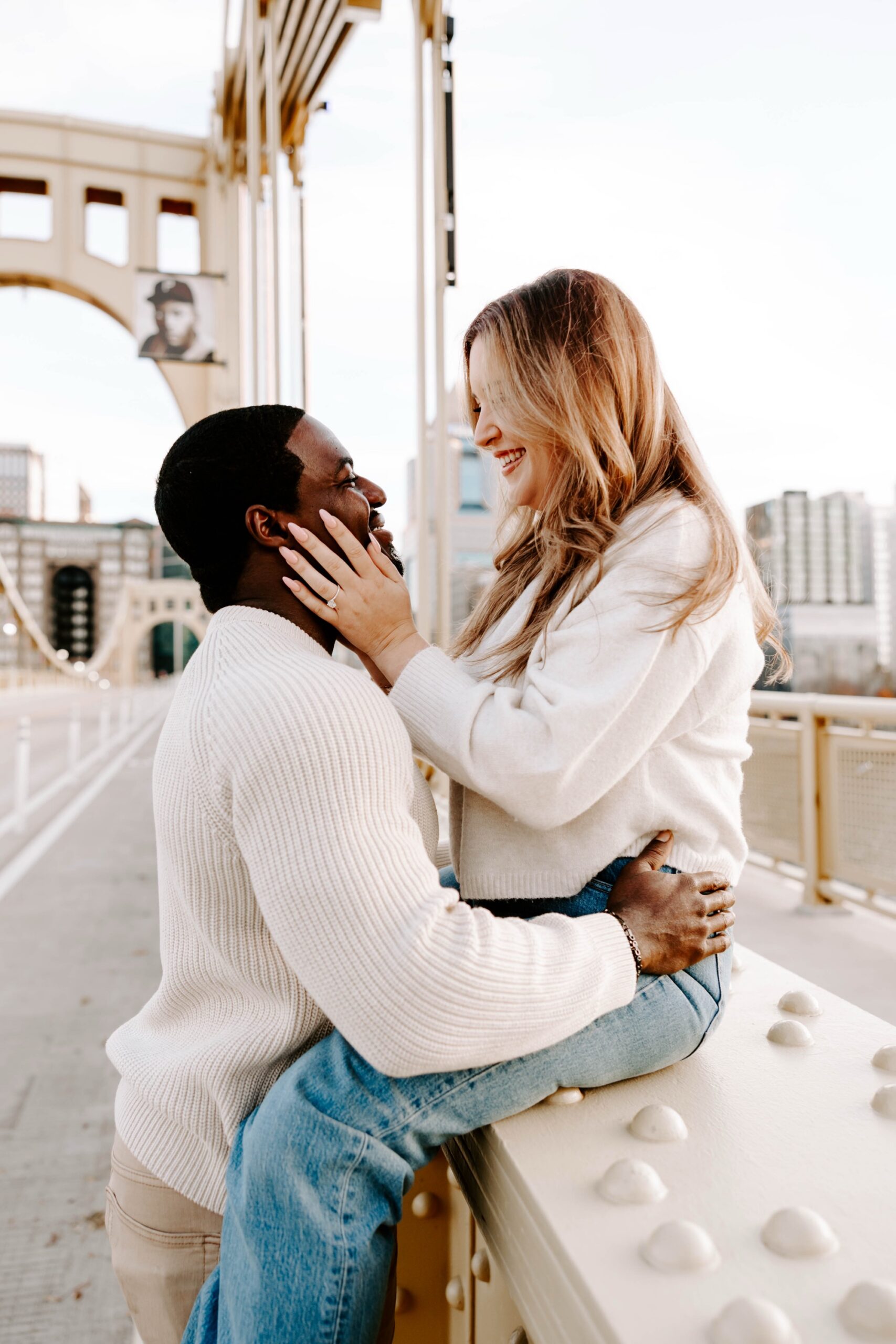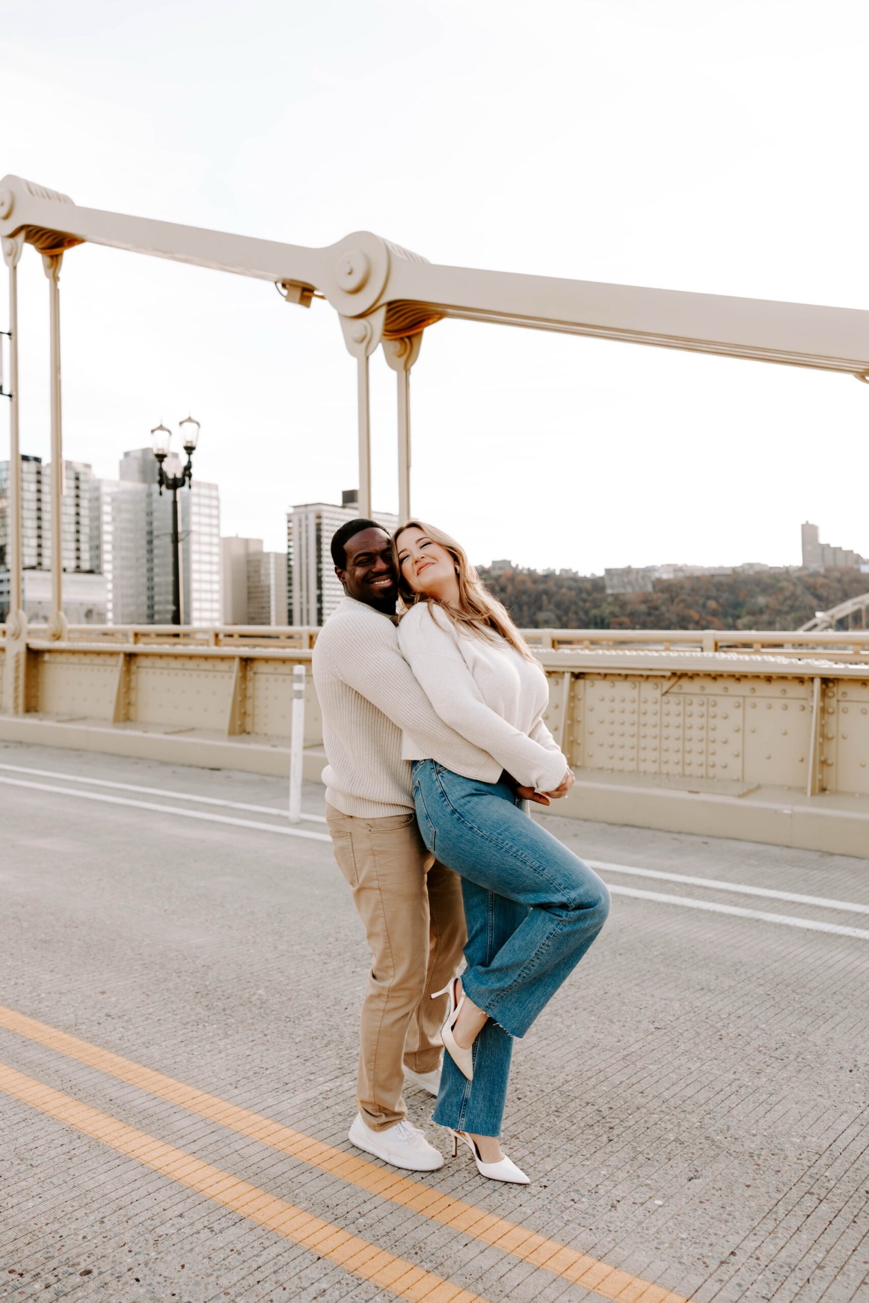 We met on the iconic Roberto Clemente Bridge, with sweeping views of PNC Park rising proudly along Pittsburgh’s North Shore. (Where are my Pirates fans at?) The late afternoon sun wrapped everything in a soft, golden glow — the kind that makes the city shimmer and turns ordinary moments into something cinematic. They danced, laughed, and posed like no one was watching, and that’s my favorite kind of session!